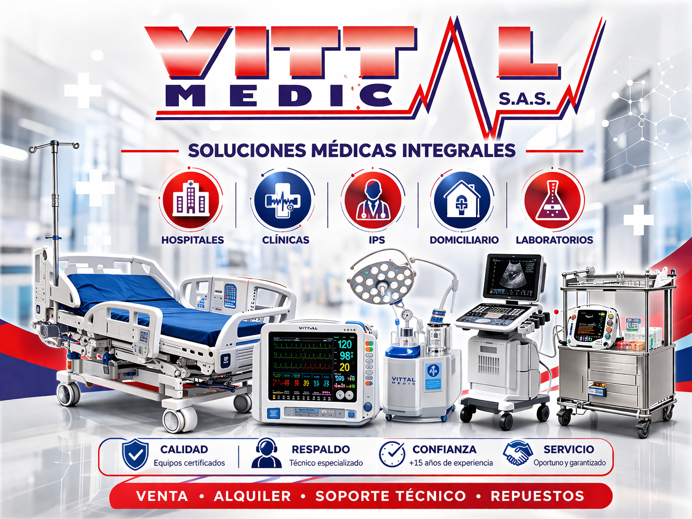 En VITTAL MEDICA nos dedicamos a la comercialización de equipos médicos y hospitalarios de alta calidad, brindando soluciones integrales para la atención médica y hospitalaria de nuestros clientes. Confía en nosotros para obtener los mejores productos y servicios en el sector de la salud.